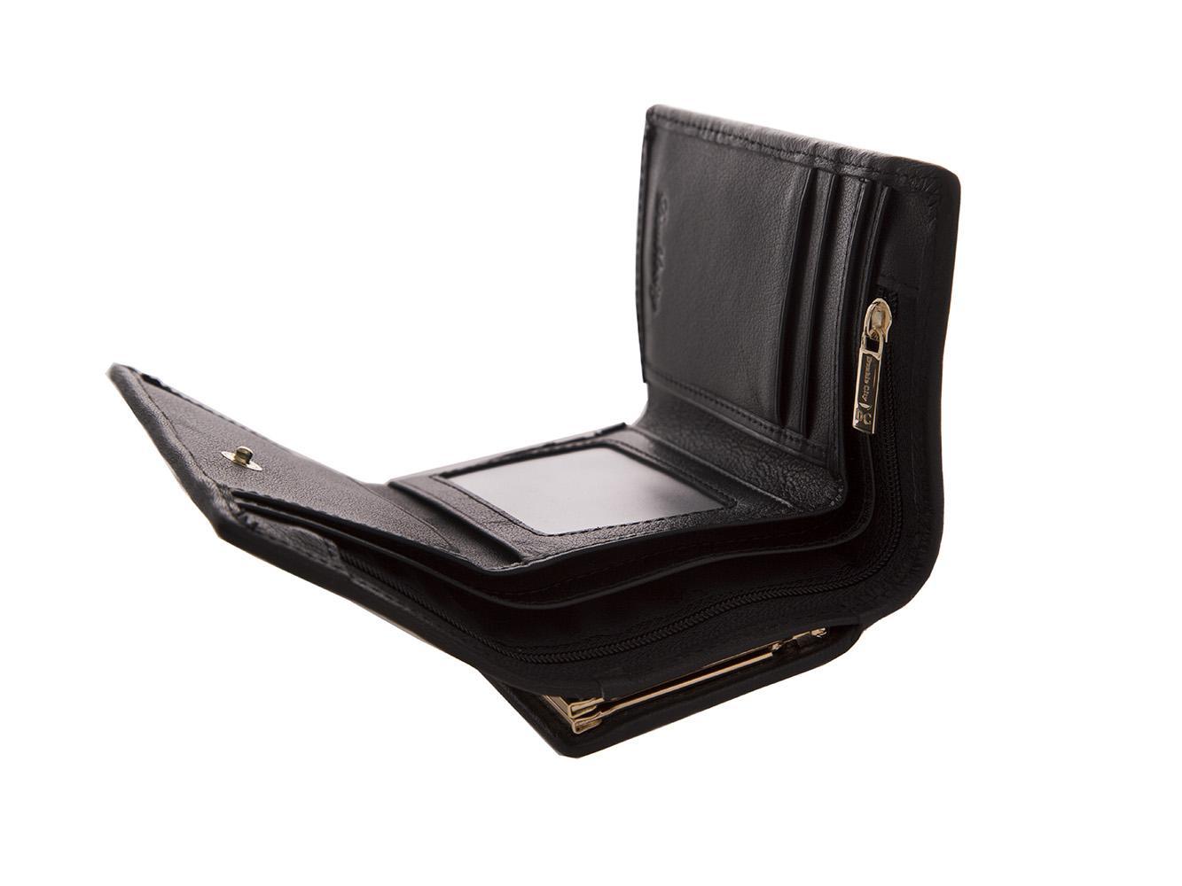 Закрывается клапаном на кнопке, 2 отделения для денег + 1 на молнии, 2 кармашка для пластиковых карт, 1 отделение для пропуска, 2 потайных кармана, отделение для мелочи снаружи.