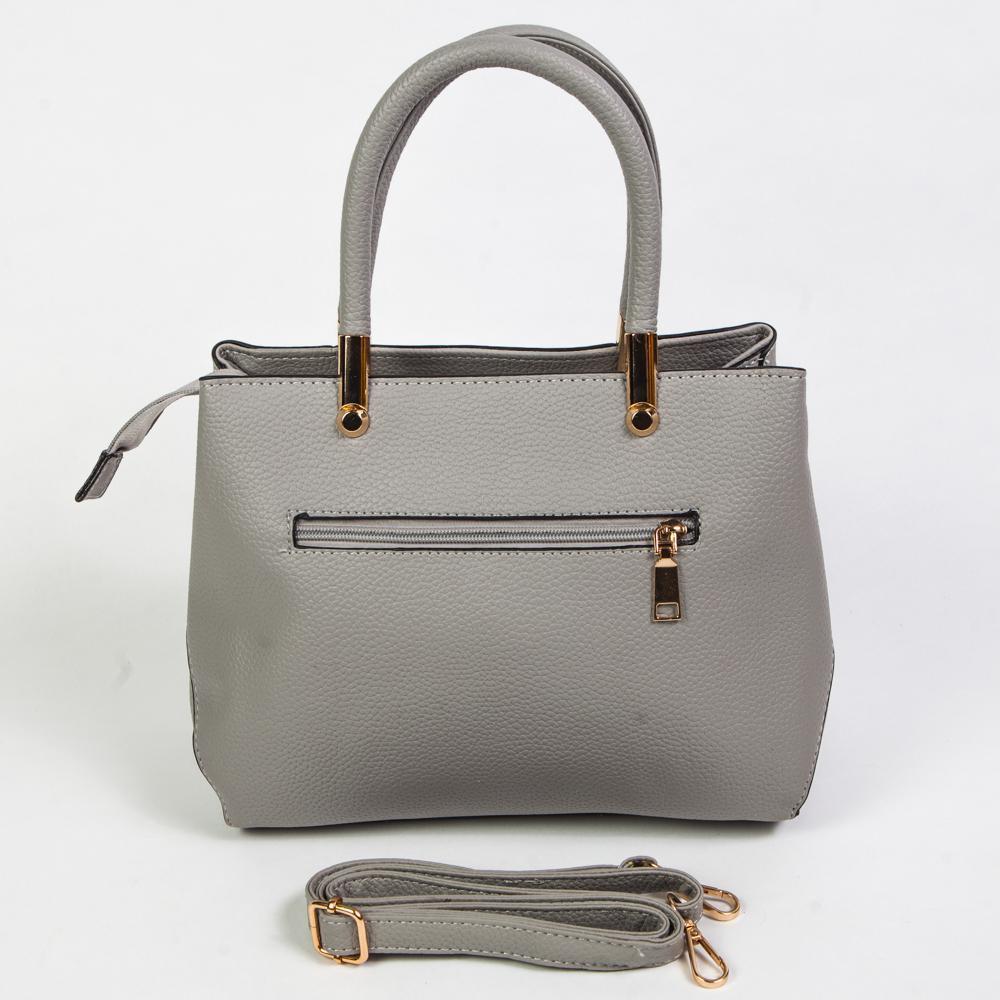 Стильная модная женская средняя светло-серая сумка с розой из экокожи 31х35х12 см с плечевым ремнём 0478-3