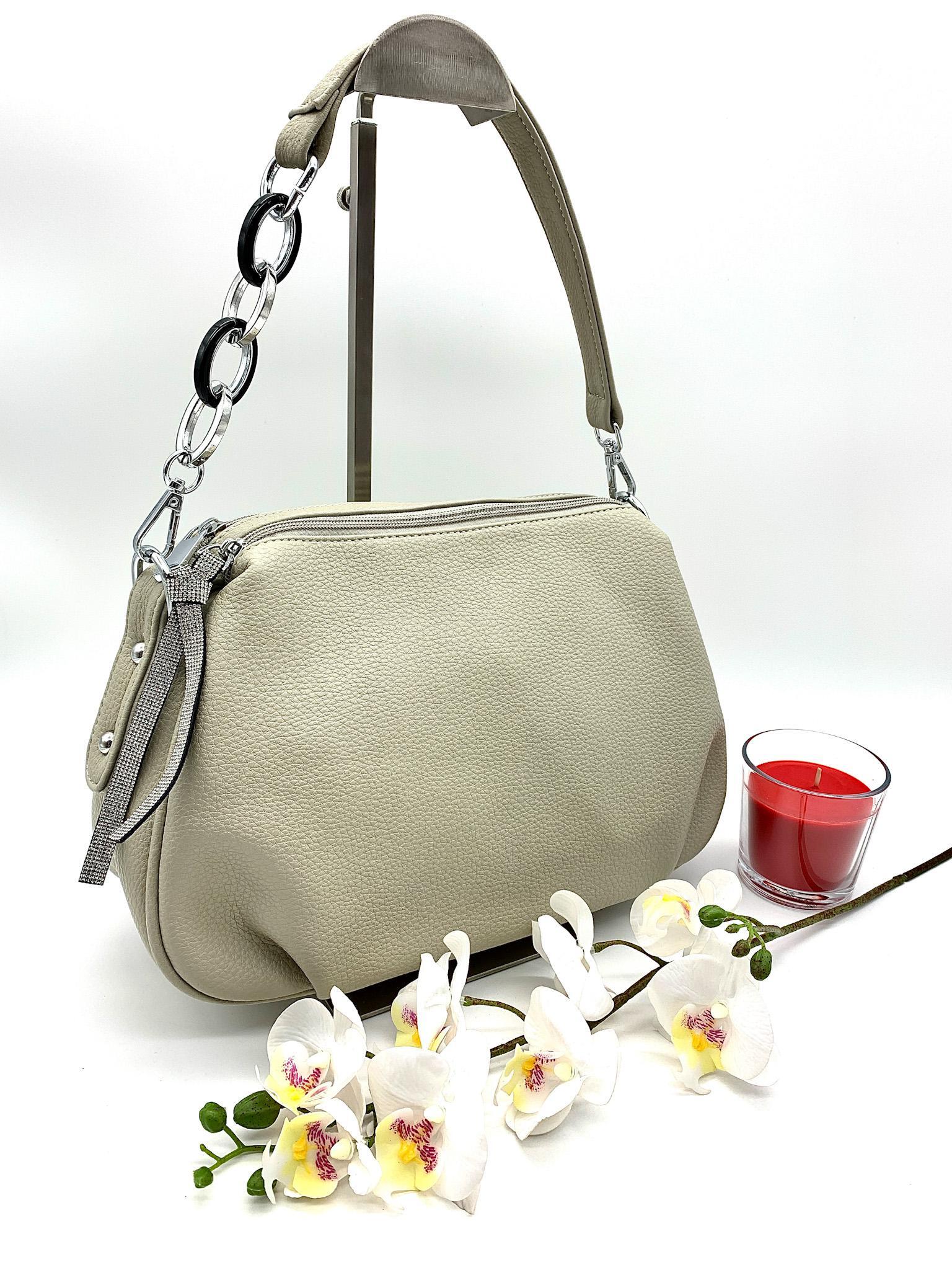 Элегантная повседневная сумка из мягкой экокожи. Оригинальная фурнитура - металл под серебро, два съемных ремешка, два удобных отделения. Потайной карман на молнии и мини карманы для телефона и мелочей. На задней стороне практичный карман на молнии. Сумка для стильных женщин, предпочитающих современную классику!
